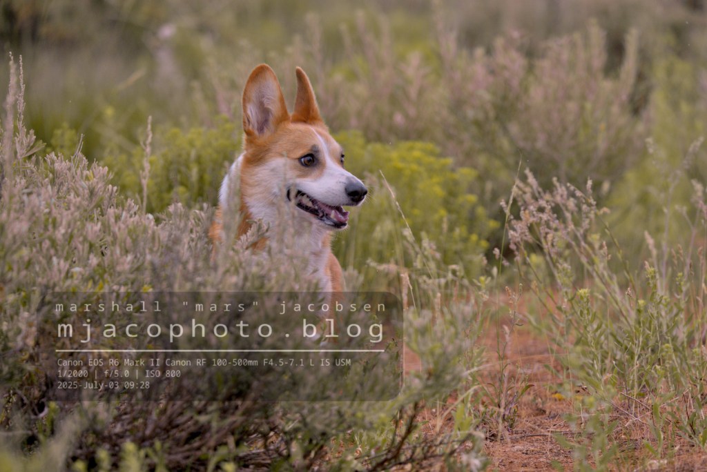 Tater Tot (my friend’s corgi) had a splendid time frolicking along some red dirt roads during a short trip in Northern Utah this week. Even though the grass and wild brush wasn’t too tall, he still got tons of exercise because his legs are so short.